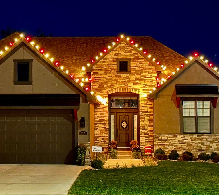 We handle design, installation, maintenance, and takedown, all customized to fit your home perfectly. Our commercial-grade lights are installed safely and securely using weather-resistant clips, professional timers, and clean layout designs that make your home stand out — day and night.